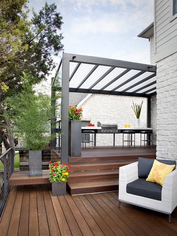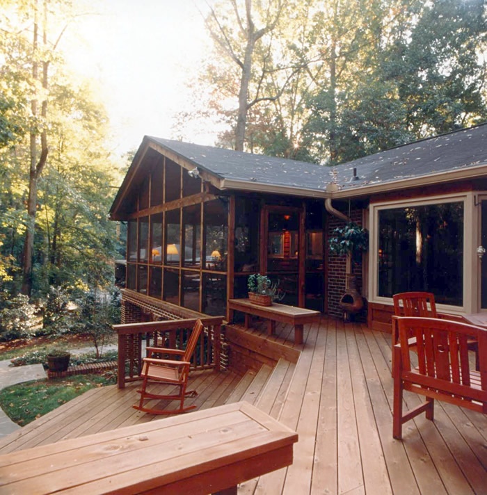 Decks can be built to wrap around shapes, trees and features of your home. They can be single or multilevel or on the second story with a staircase leading up to it.